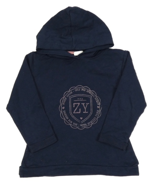 Tmavomodrá mikina s potlačou a kapucňou