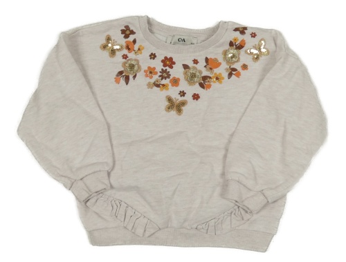 Svetlobéžová melírovaná oversize mikina s kvietkami a motýlikmi a flitrami a volánikmi C&A