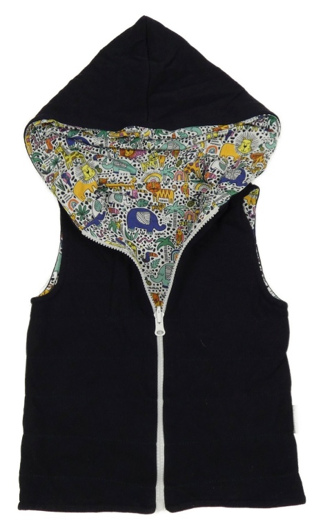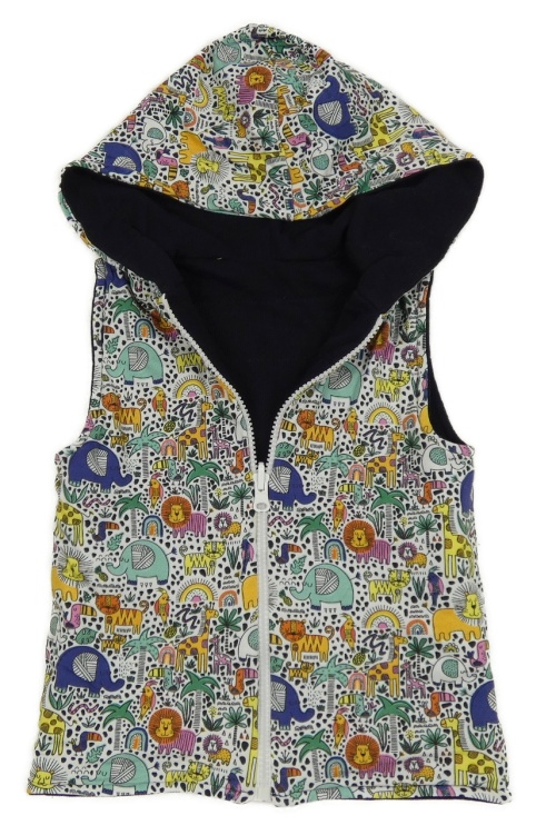 Tmavomodrá/barevná zateplená obojstranná mikinová vesta s kapucňou