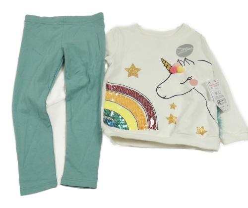 Nové - 2x biela mikina s jednorožcem + zelené legíny F&F