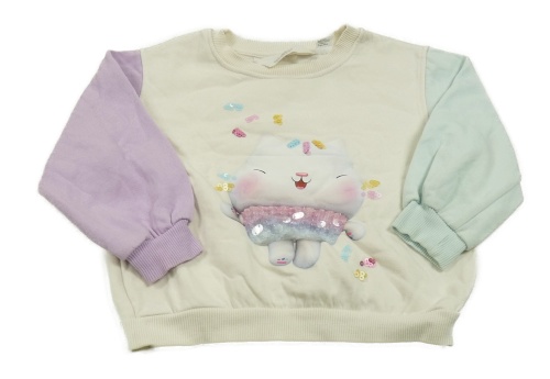 Smetanovo-světlezeleno-lila oversize mikina s mačkou H&M