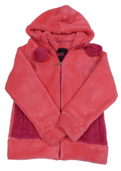 Ružová plyšová prepínaci mikina s kapucňou a bambulemi