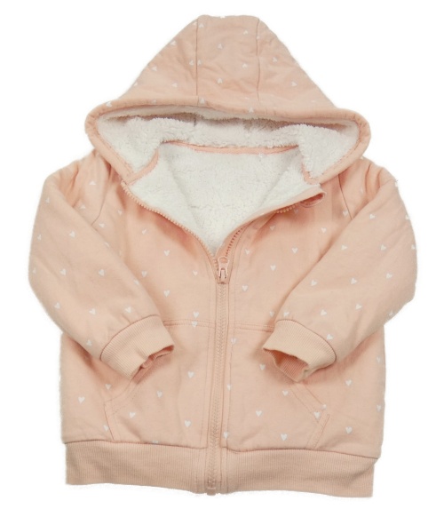 Svetloružová zateplená prepínaci mikina so srdiečkami a kapucňou George