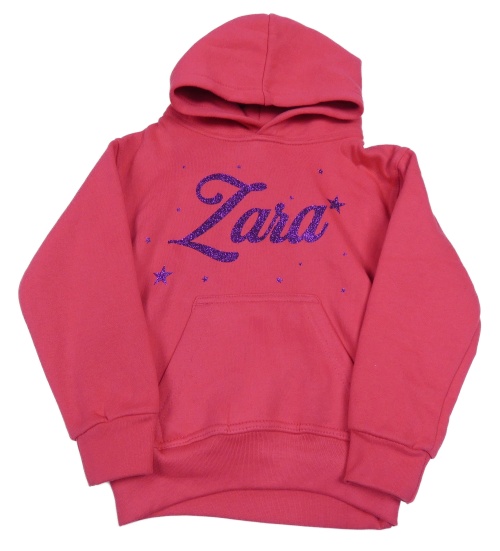 Tmavoružová mikina s fialovým nápisom s kapucňou