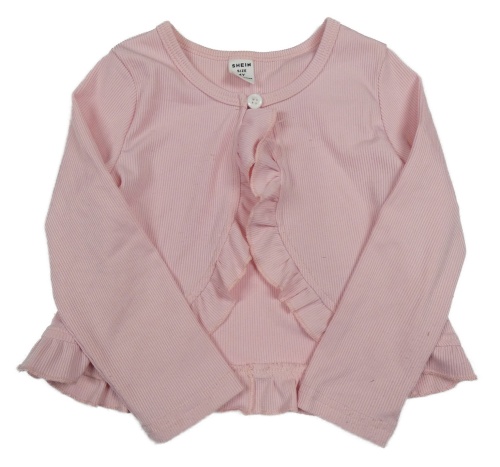 Světlerůžové žebrované propínací bolérko s volánikmi SHEIN