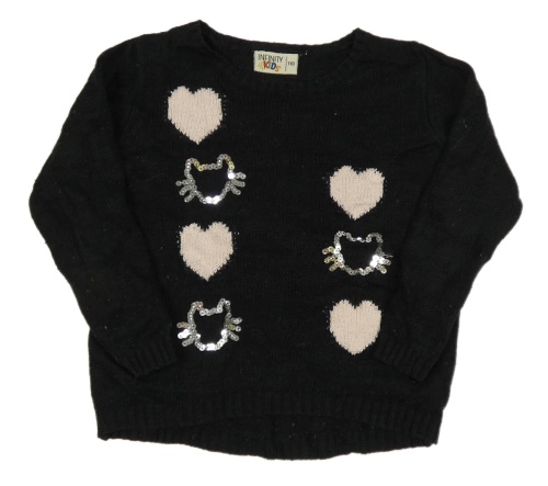Čierny sveter so srdiečkami a kočkami z flitrů Infinity Kids