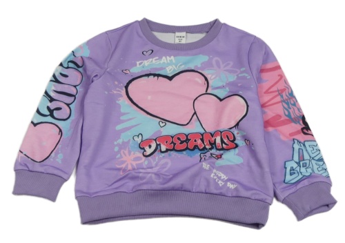 Levandulová mikina so srdiečkami a graffiti nápisy SHEIN