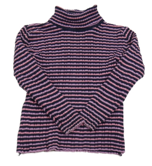 Tmavomodro-růžovo-lila pruhovaný rebrovaný svetrový rolák Nutmeg