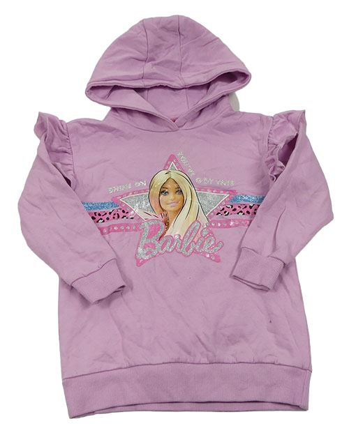 Lila dlhá mikina s Barbie a volánikmi a kapucňou Barbie