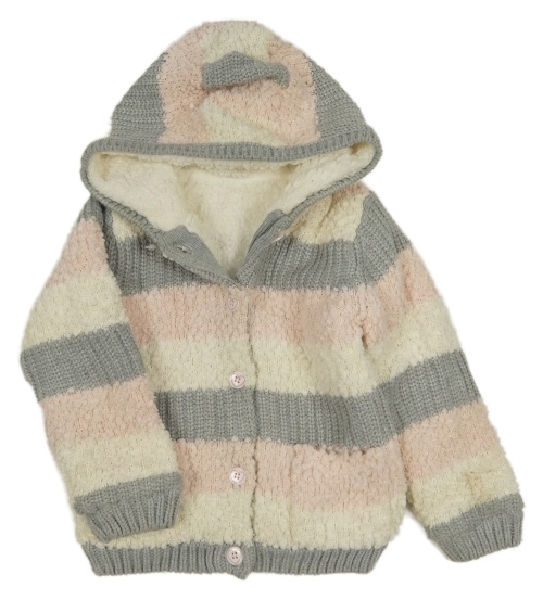 Sivo-ružovo-smotanový pruhovaný zateplený prepínaci sveter s trblietkami a kapucňou Nutmeg