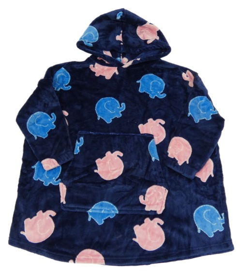 Tmavomodrá chlpatá oversize mikina so slonmi a kapucňou