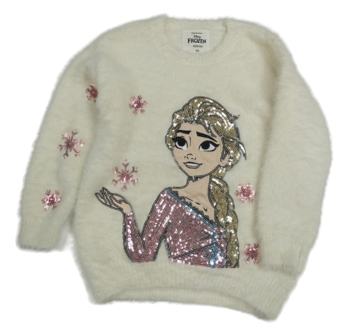 Smotanový chlpatý sveter s Elsou z flitrů C&A