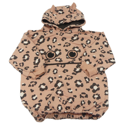 Světlehnědo-tmavohnědo-biela vzorovaná oversize dlhá mikina s očima a kapucňou