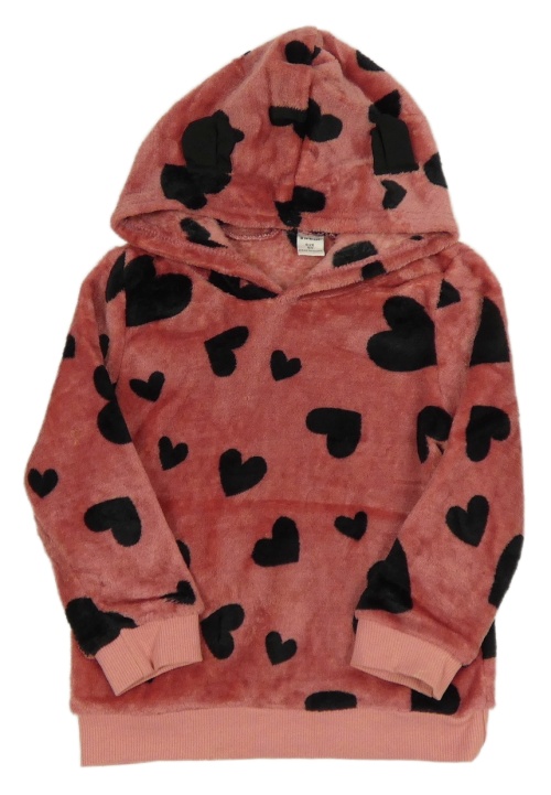 Ružová kožušinová mikina so srdiečkami a kapucňou Shein