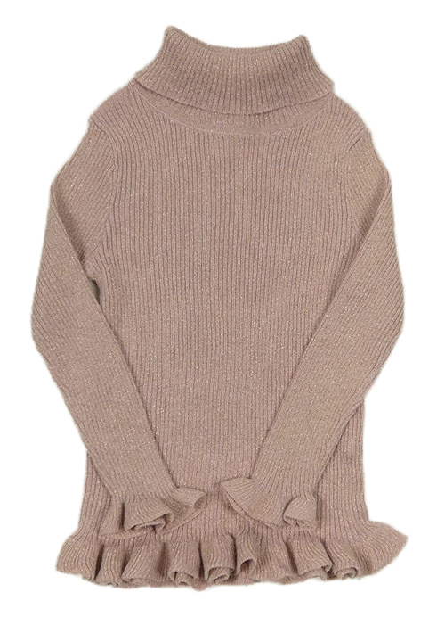Svetloružová -zlatý melírovaný rebrovaný svetrový rolák s volánikmi PRIMARK