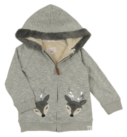 Svetlosivá zateplená prepínaci mikina s jeleňmi a kapucňou mantaray