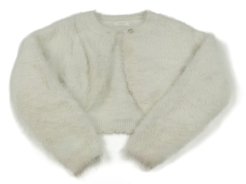 Smetanové chlupaté propínací svetrové bolérko so trblietkami Next