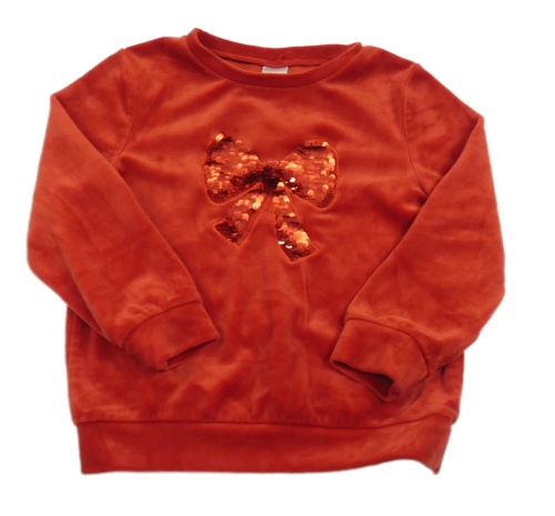 Červená zamatová mikina s mašlí z flitrů Pep&Co