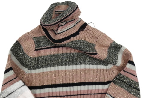 Starorůžovo-čierno-sivý rebrovaný svetrový rolák Primark