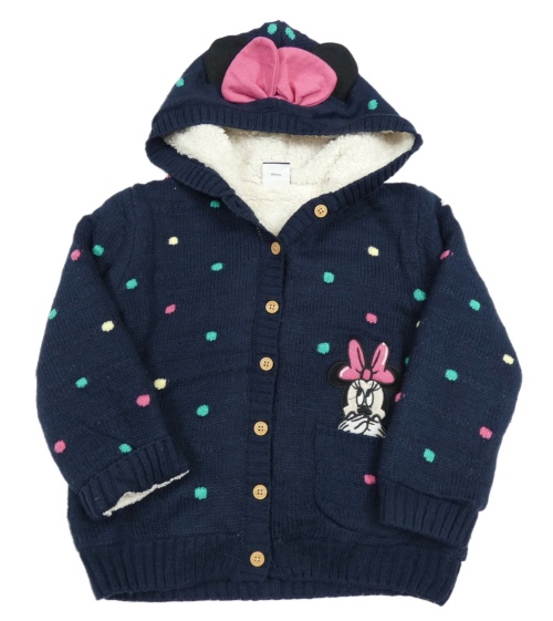 Tmavomodrý prepínaci zateplený sveter s Minnií a kapucňou George