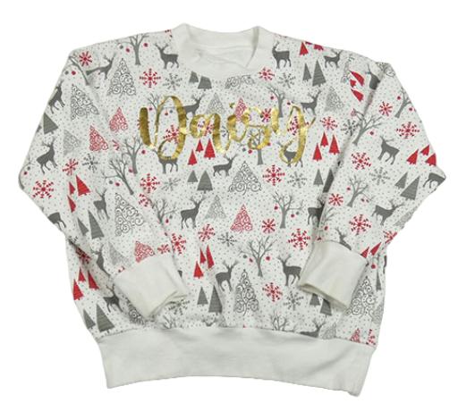 Biela bodkovaná á mikina so stromky a sobmi