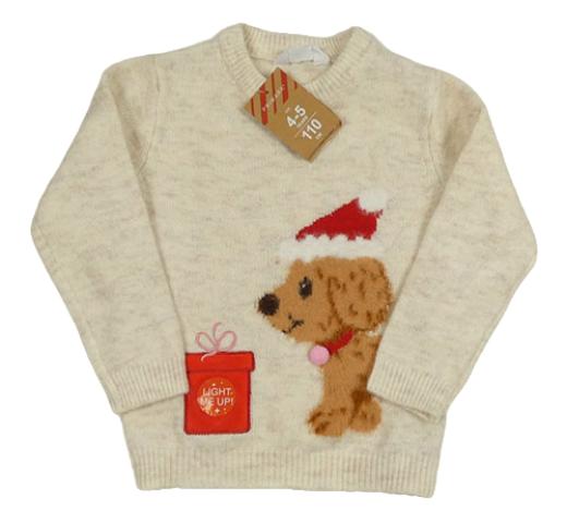 Nové - Svetlobéžový melírovaný sveter so psem a darčekom Primark