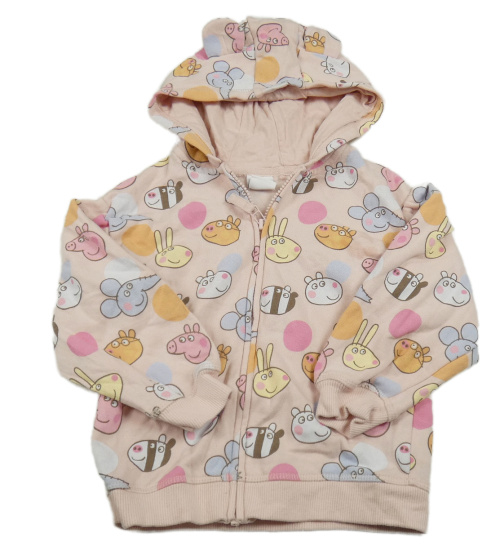 Svetloružová -farebná bodkovaná á prepínaci mikina s Peppa Pig s kamarády a kapucňou s uškami Next