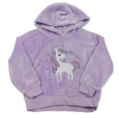 Lila chlpatá mikina s jednorožcem z flitrů a kapucňou Primark