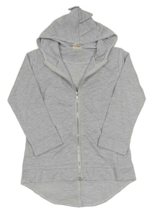 Sivá melírovaná dlhá prepínaci ľahká mikina s ostny a kapucňou