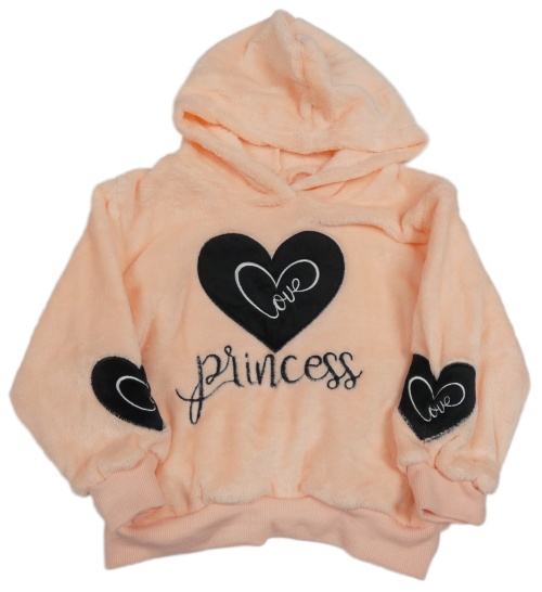 Ružová plyšová mikina so srdiečkami a kapucňou