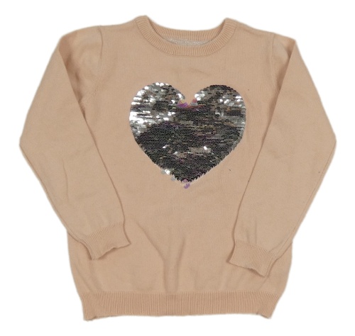 Svetloružový ľahký sveter so srdcem z flitrů Primark