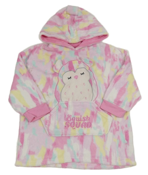 Svetloružová -farebná chlpatá ovesize mikina so sovou a kapucňou