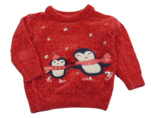 Červený žinylkový sveter s tučňáky C&A