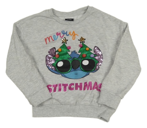 Sivá melírovaná oversize mikina so Stitchem s flitrami a vánočním motívom George