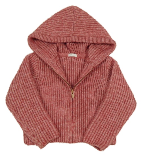 Vínovo-ružový melírovaný rebrovaný prepínaci sveter s kapucňou Next