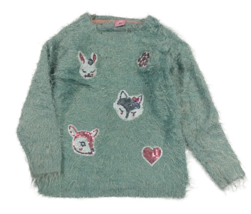 Svetlomodrý chlpatý sveter so zvířátky z flitrů Kiki&Koko