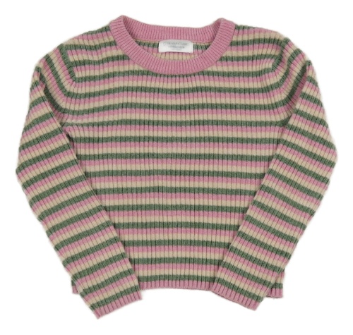 Ružovo-tmavozeleno-smotanový pruhovaný rebrovaný žinylkový crop sveter PRIMARK