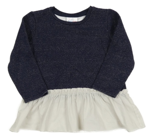 Tmavomodro-zlatá melírovaná tepláková tunika s bielým volánikom Topolino
