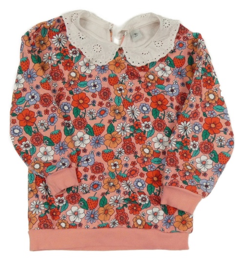 Ružová mikina s kvietkami a jahůdkami a golierikom s madeirou Tu