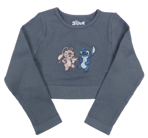 Tmavošedé žebrované crop mikinotriko so Stitchem a Angelou PRIMARK