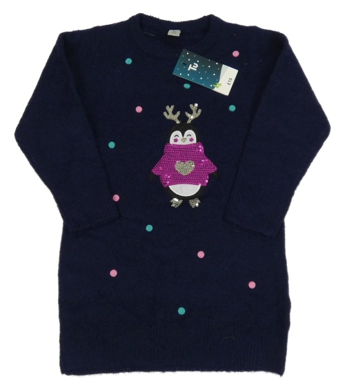 Nové - Tmavomodrý dlhý sveter s tučňákem Tu