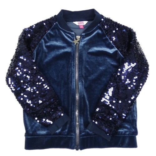 Tmavomodrá zamatová mikina s flitrovými rukávy
