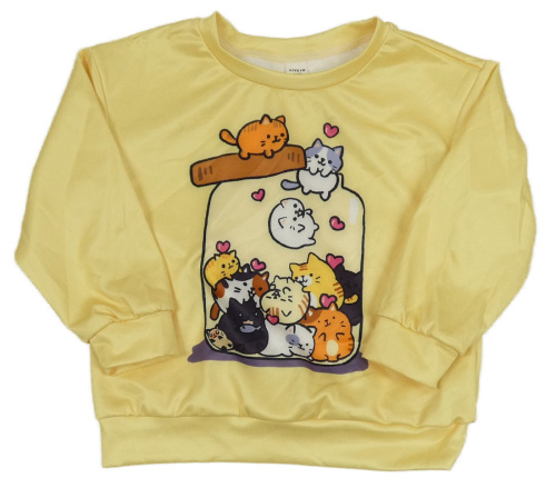 Žltá mikina s kočičkami a sklenicí SHEIN
