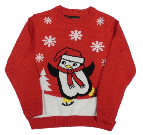 Červeno-biely pletený sveter s tučňáčkem bpc