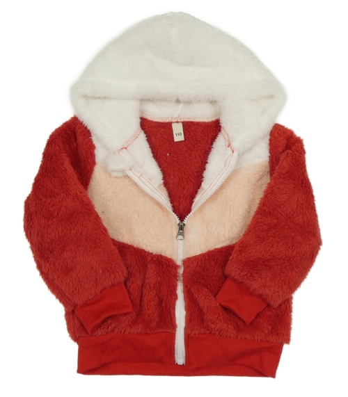 Červeno-bielo-svetloružová chlpatá prepínaci mikina s kapucňou