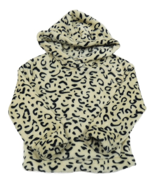 Béžovo-čierna vzorovaná chlpatá mikina s kapucňou