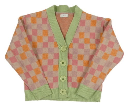 Svetloružová -oranžový kockovaný prepínaci sveter so zelenými lemy Next