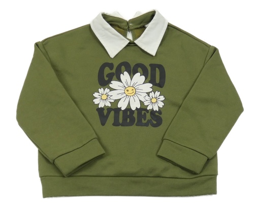 Khaki mikina s kopretinami a nápismi a golierikom SHEIN