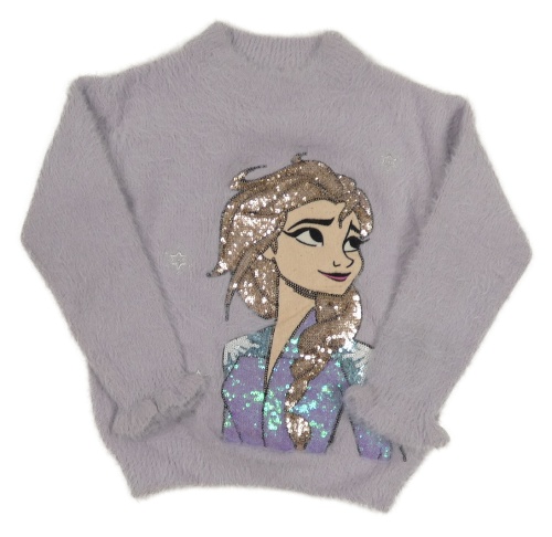 Lila chlpatý sveter s Elsou z flitrů C&A