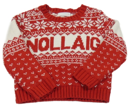 Červeno-biely vzorolvaný sveter s nápisom Leigh Tucker